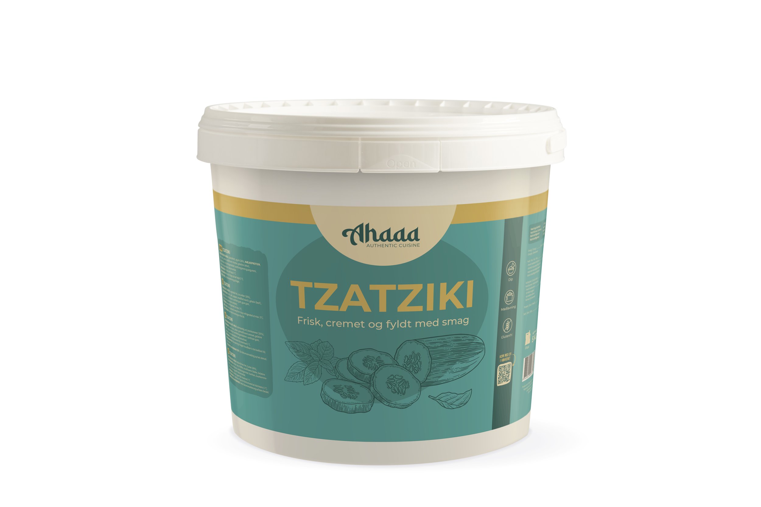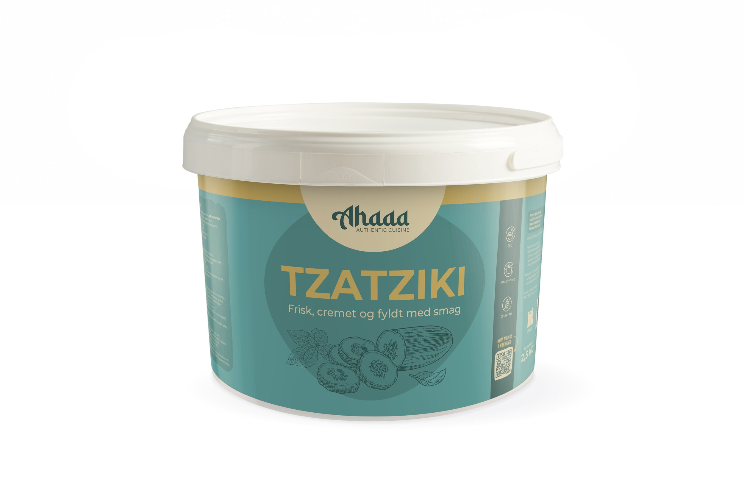 Hos Ahaaa går vi ikke på kompromis. Tzatzikien er udviklet uden hvidløg, men med lige så meget karakter og kærlighed. Resultatet er en silkeblød dip med små, sprøde bidder og en syrlig friskhed, der løfter alt fra grillede grøntsager til bowls og wraps.