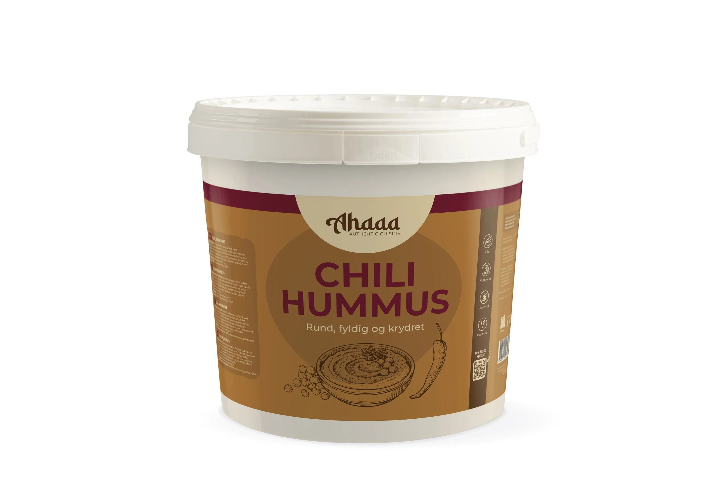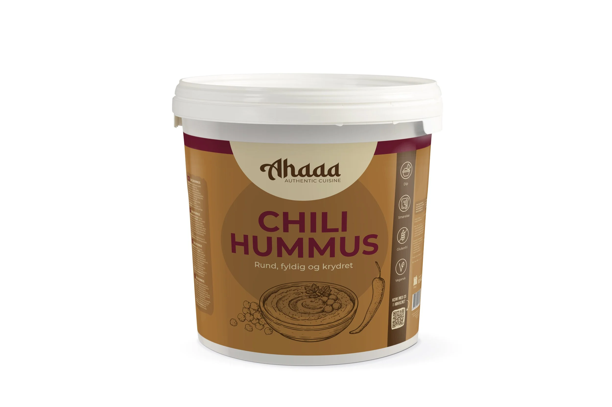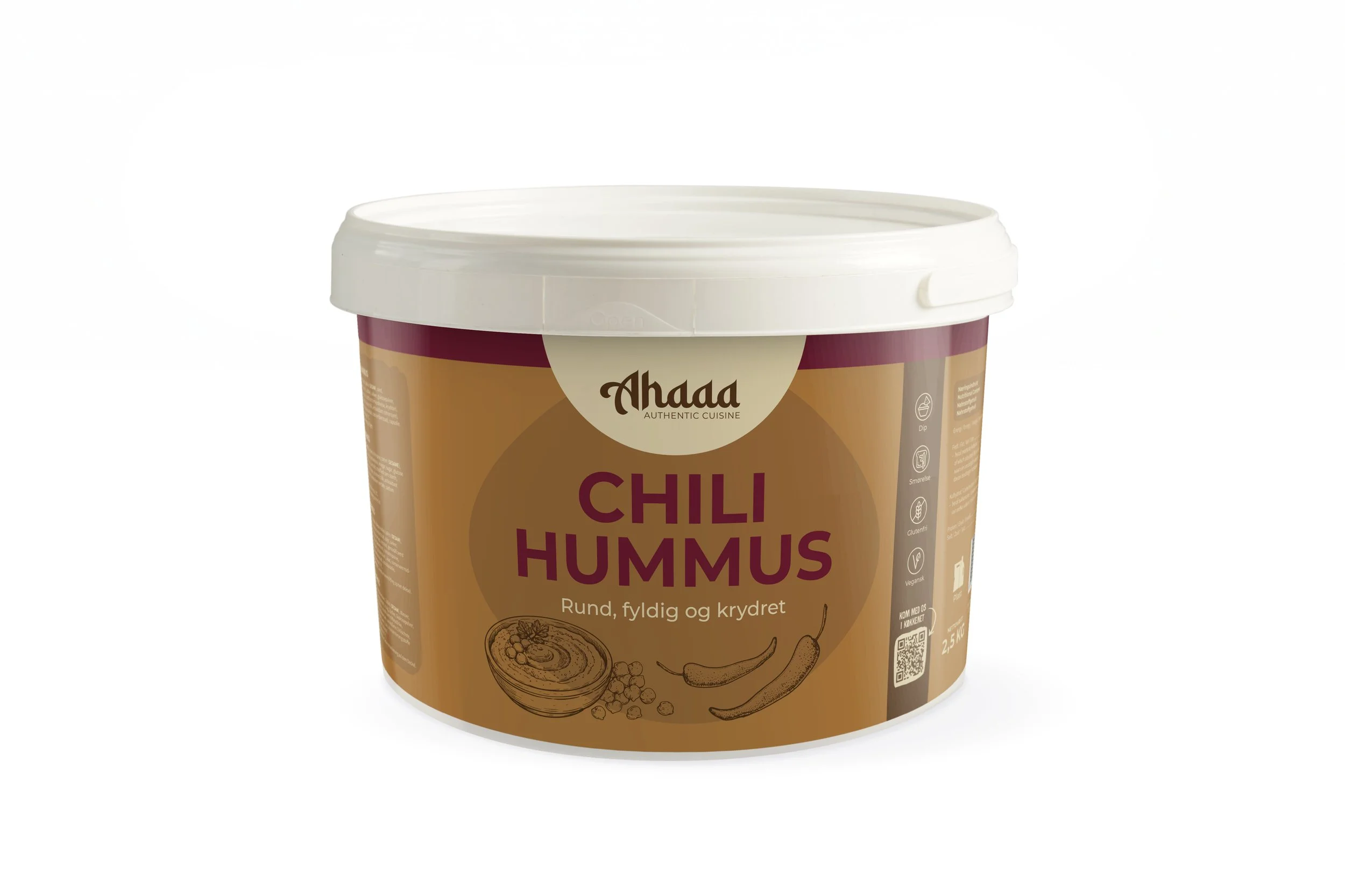 Vi tager udgangspunkt i vores traditionsrige hummusopskrift med friskkogte kikærter, blødgjort til perfektion og blendet til en silkeblød konsistens. Derefter tilsætter vi nøje afstemt chili, der løfter smagen med varme og dybde – uden at overdøve det, der gør hummus til hummus.